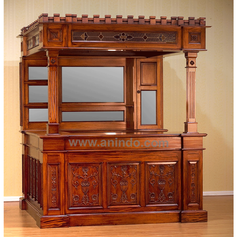 Carved bar table is made of solid mahogany wood in pecan finish. It is hand carving bar ...