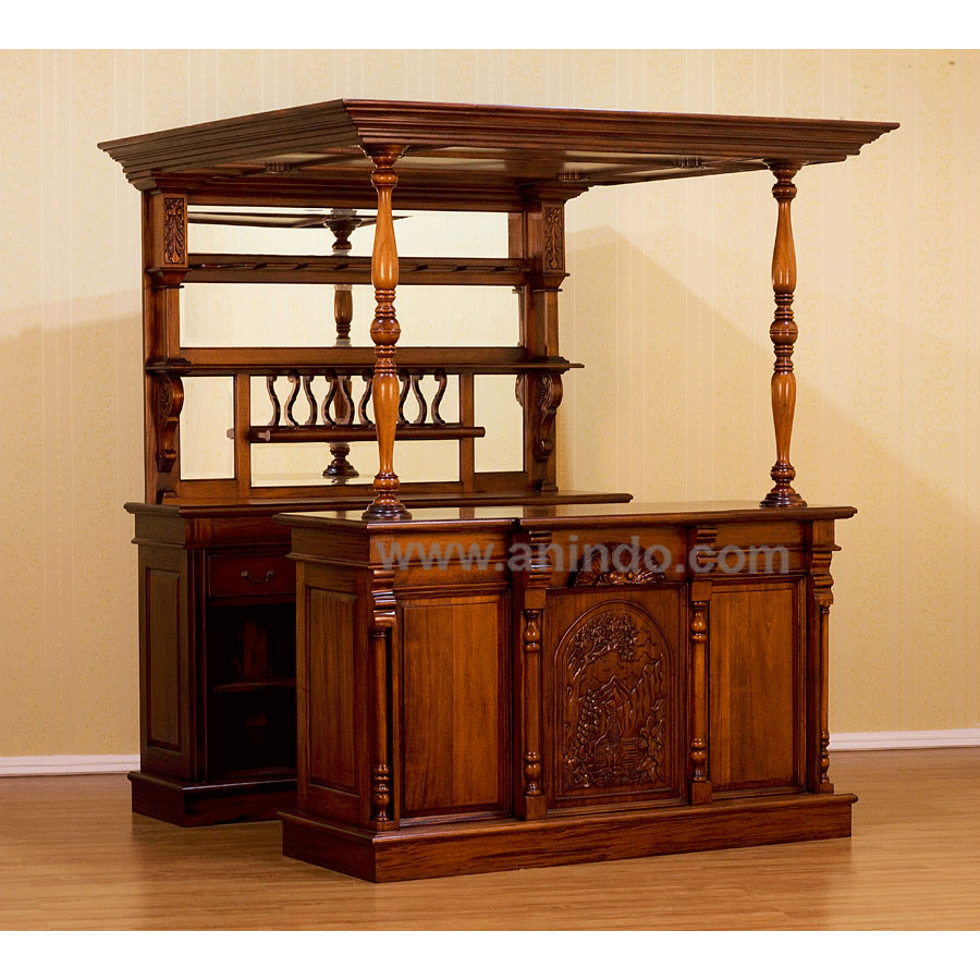 Carved bar table is made of solid mahogany wood in pecan finish. It is hand carving bar ...