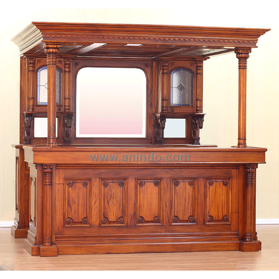Carved bar table is made of solid mahogany wood in pecan finish. It is hand carving bar ...