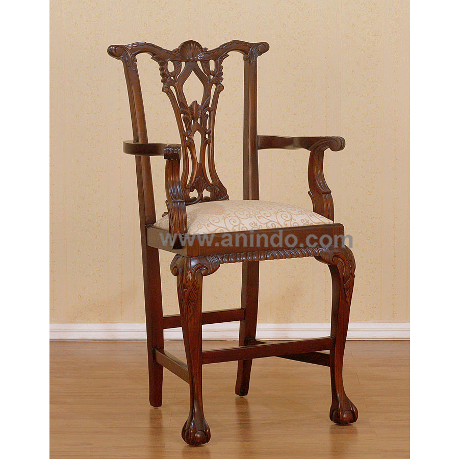 Chippendale classic bar stool is made of solid mahogany wood in walnut finish. Upholstered ...