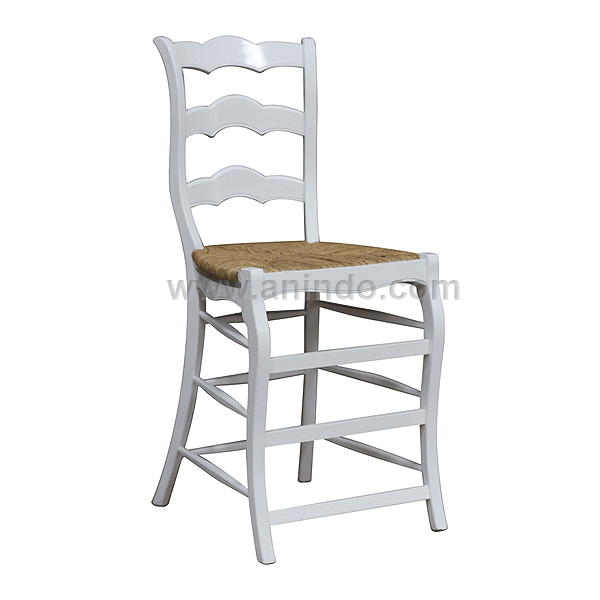 Philadelphia bar chair is made of solid mahogany wood in white painted finish. With rush on seat.