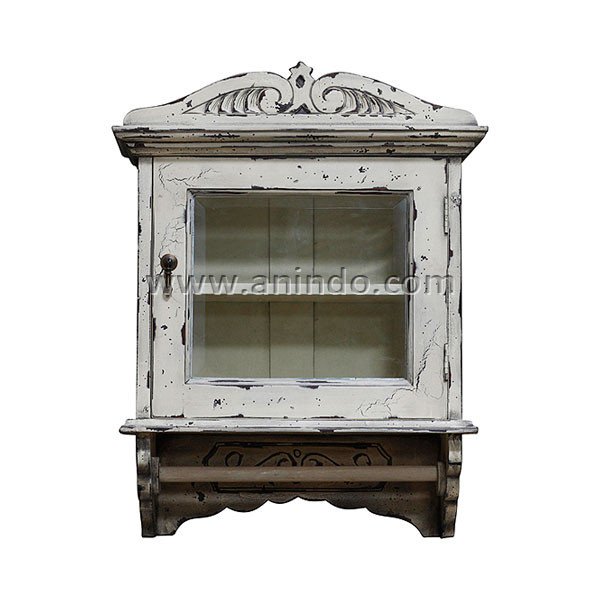 Our medicine rack is made of solid mahogany wood in distressed white painted finish.