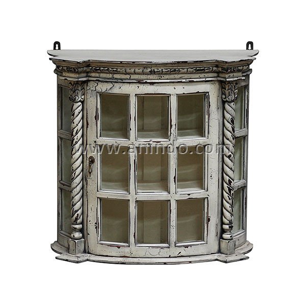 Our medicine cabinet is made of solid mahogany wood in distressed white painted finish.