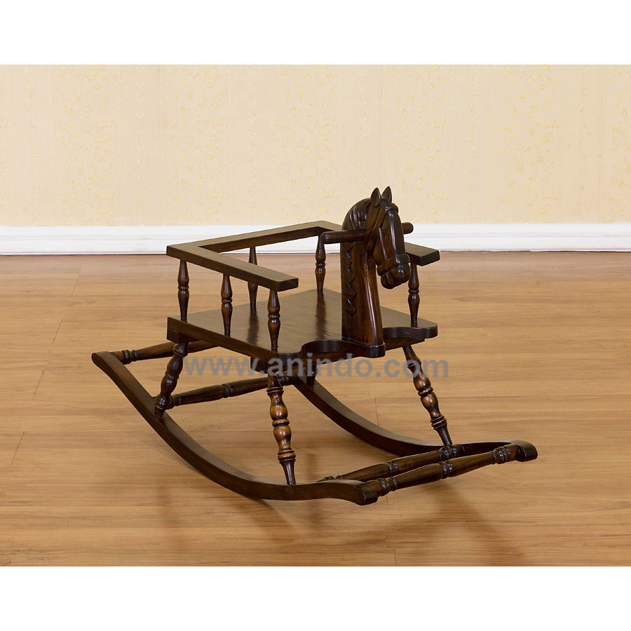 Mini horse rocking chair is made of solid mahogany wood in walnut finish.