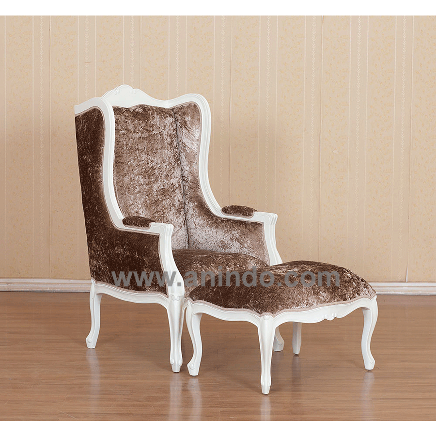 Our french wing chair with stool is made of solid mahogany wood in silver leaf finish. ...
