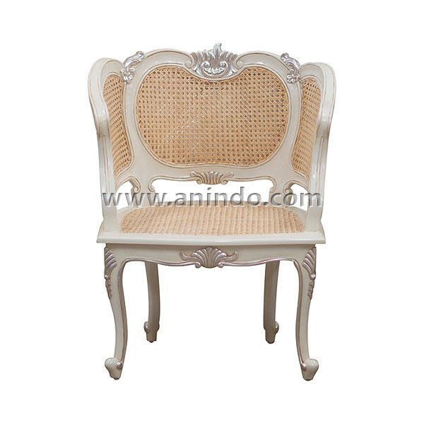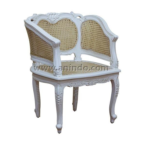 French chair with rattan is made of solid mahogany wood in white painted finish.