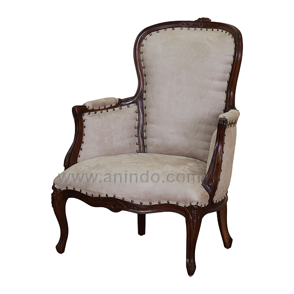 French carved chair 1 seater is made of solid mahogany wood in walnut finish. Upholstered ...