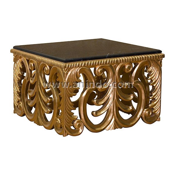 Our coffee table full carving gold painted with marble is made of solid mahogany wood in gold painted finish.