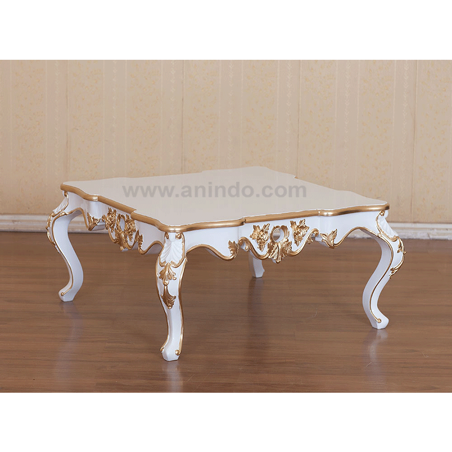 Our?buccarest coffee table is made of solid mahogany wood in white combine?with gold?painted finish.