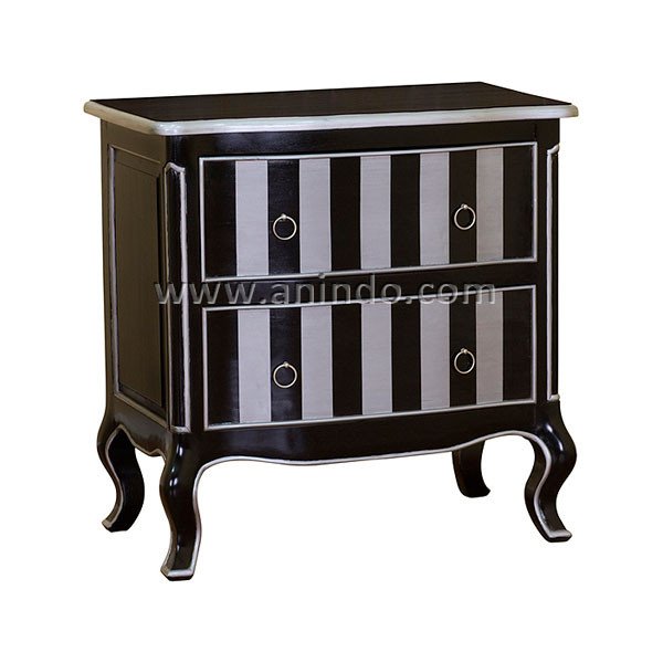 2 drawers commode is made of mahogany wood in black combined with silver painted finish.