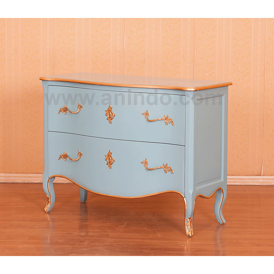 Our commode 3 drawers is made of mahogany wood in blue combined with floral gold painted ...