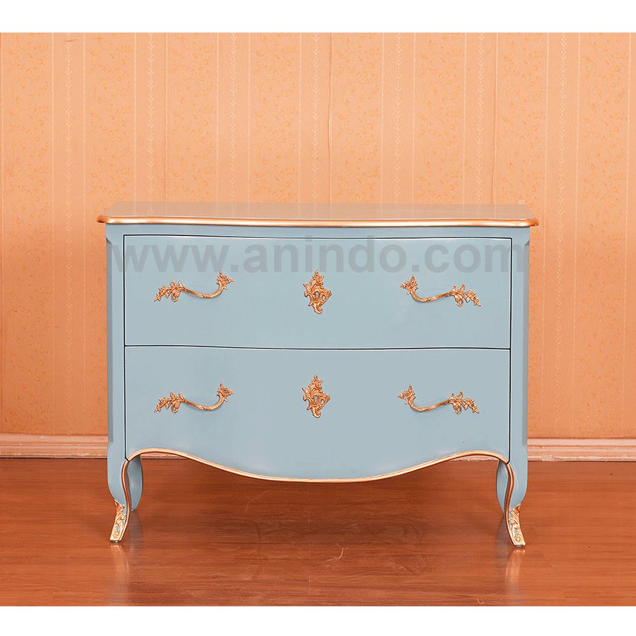 Commode 2 doors is made of mahogany wood in blue combined with floral gold painted ...