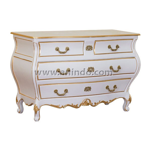 Our curve commode is made of mahogany wood in white combined with gold painted finish.