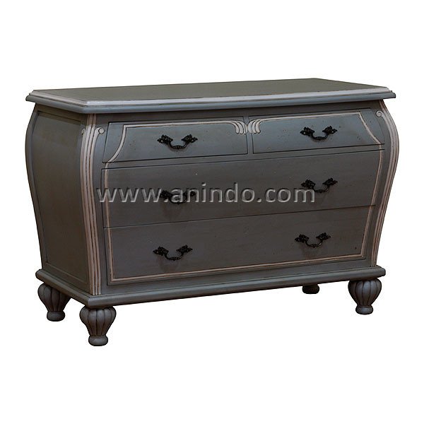 Erin commode 4 drawers is made of mahogany wood in grey combined with white painted finish. Antique solid brass handles.