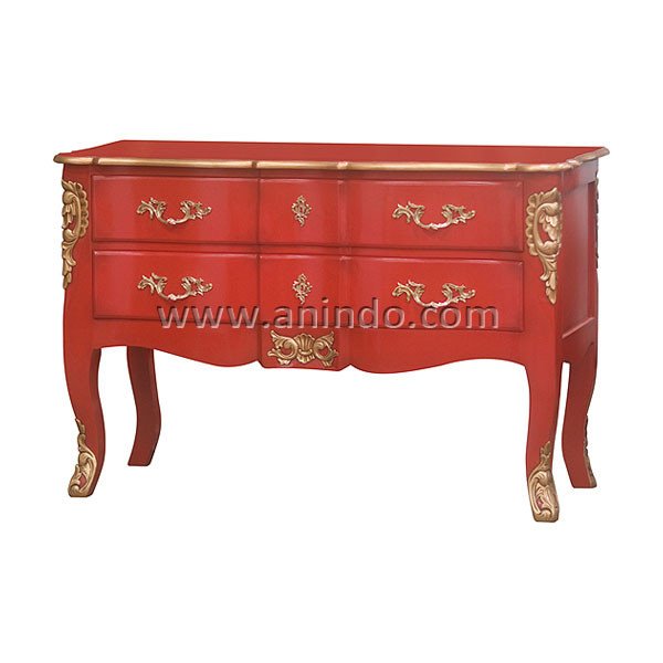 Our kebagusan commode is made of mahogany wood in red combined with gold painted finish.