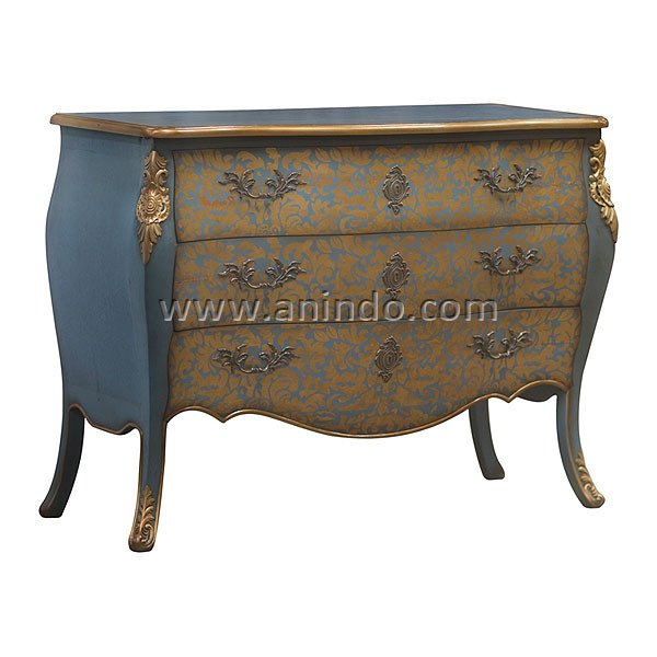 Ngasem commode is made of mahogany wood in blue combined with gold painted finish.