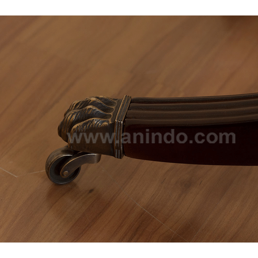 Our castor console table?is made of mahogany wood in walnut finish.
