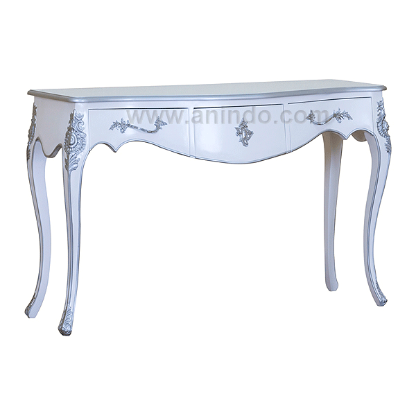 Our soft console painted is made of solid mahogany wood in?white painted combine with silver leaf finish.