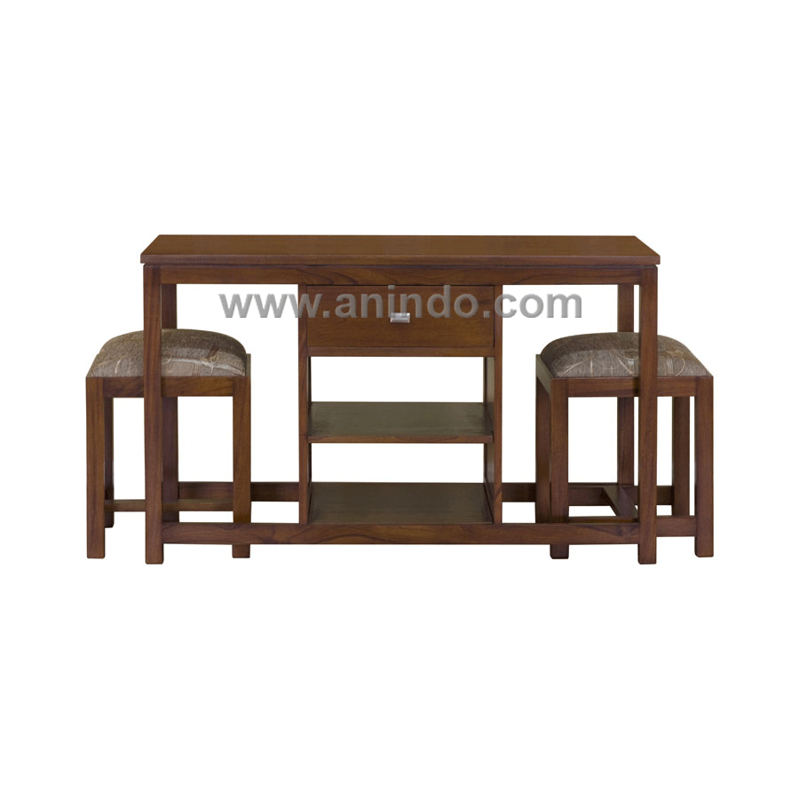 Drawers console with stoo is made of solid mahogany wood in walnut finish.