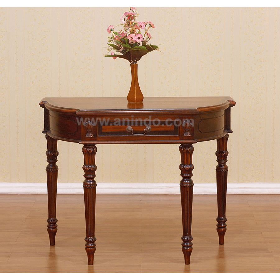 Halfmoon console table with drawer is made of solid mahogany wood in walnut ...