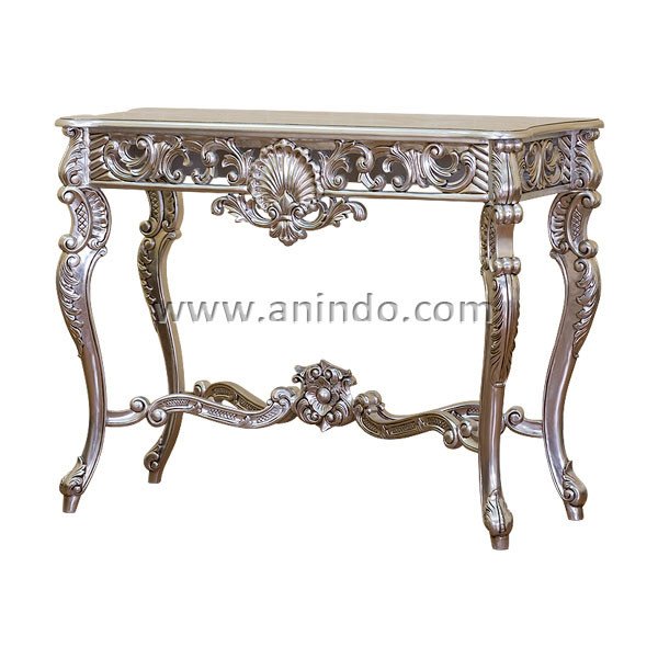 Our heavy carved console is made of solid mahogany wood in silver leaf finish.