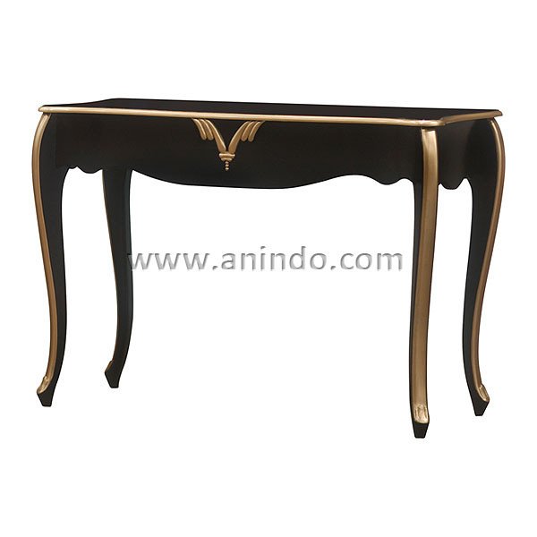 Jennifer console table is made of mahogany wood in black with gold painted on details.