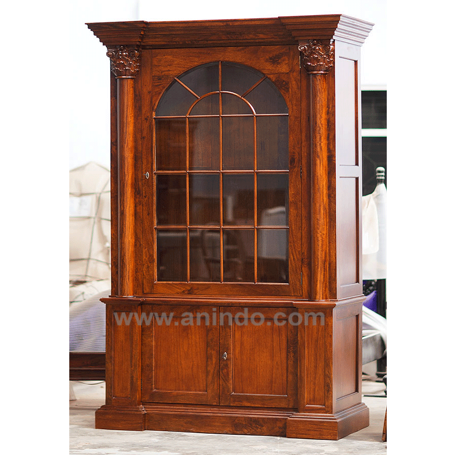 Victorian4 doors display cabinet is made of solid mahogany wood in walnut finish.