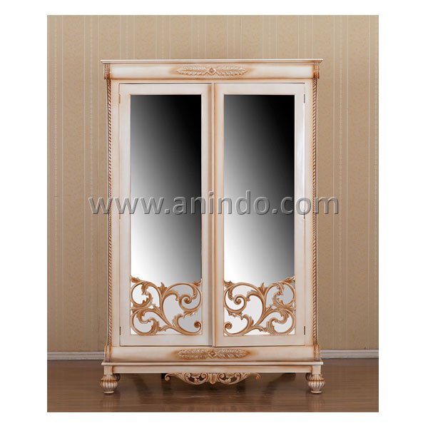Our mirror display cabinet is made of mahogany wood in white combined with gold painted finish.
