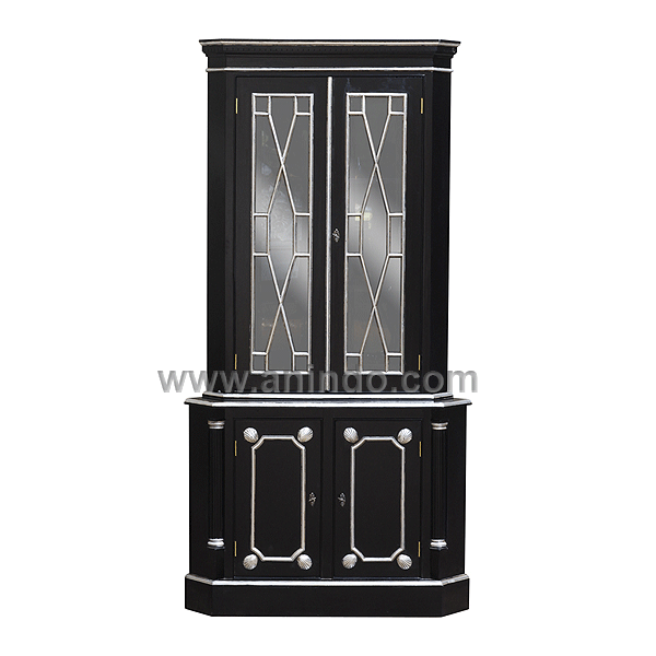 Our?modern corner cabinet?is made of mahogany wood in?black painted combined with silver leaf?finish.
