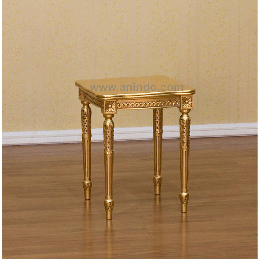 Carved end table gold is made of mahogany wood in gold leaf finish.