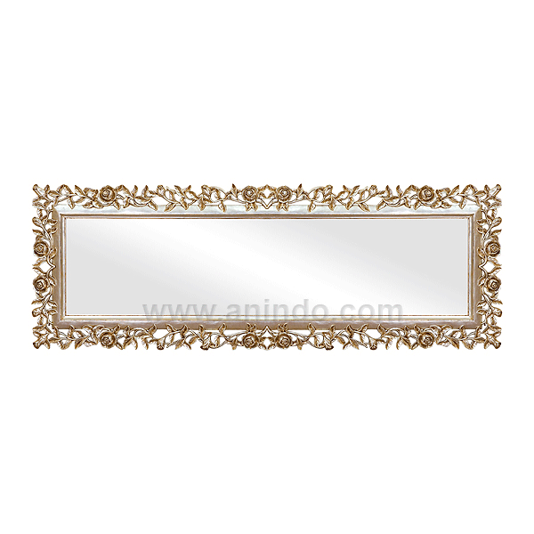 Prambanan wall mirror is made of solid mahogany wood in silver leaf finish.