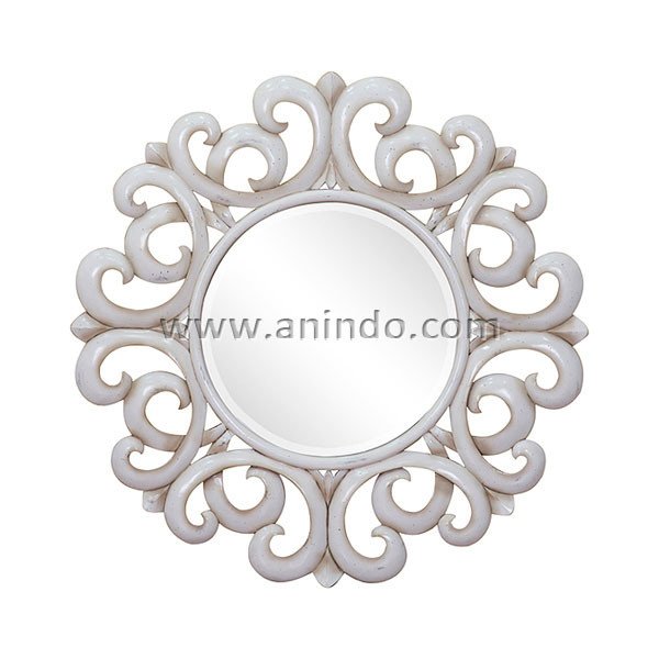 Flores wall mirror is made of solid mahogany wood in distressed cream painted finish.