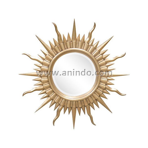 Sun wall mirror is made of solid mahogany wood in gold leaf finish.