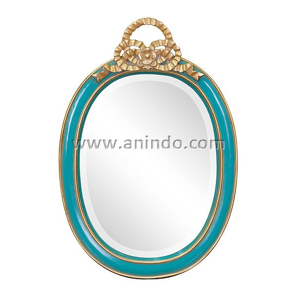 Wicki carved mirror is made of solid mahogany wood in light blue combined with gold painted finish.