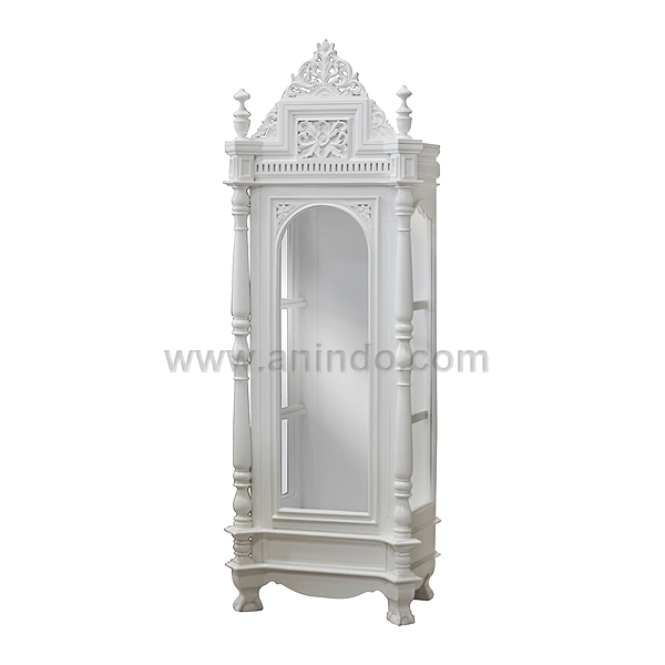 Kenny display cabinet 1 door with glass is made of solid mahogany wood in white painted ...