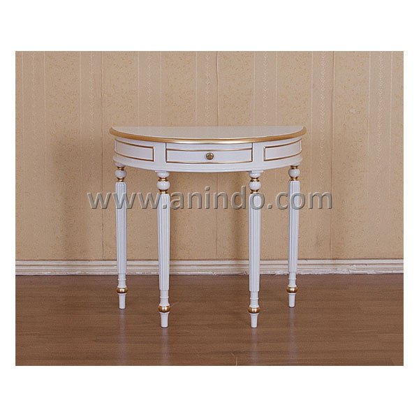 Our pony half table is made of mahogany wood in white combined with gold painted finish.