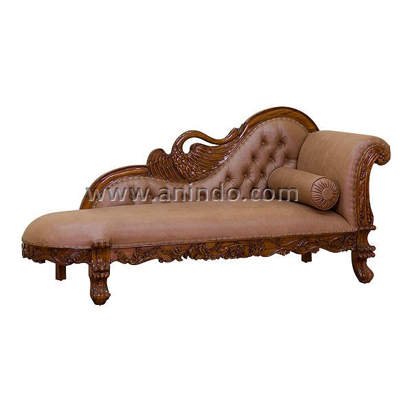 Our?carved swan sofa is made of mahogany wood in pecan finish. Upholstered in brown pvc leather with cushion.