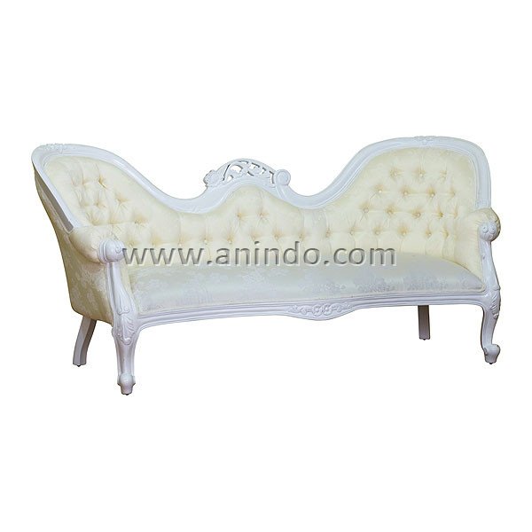 Our double end sofa carved is made of mahogany wood in white painted finish. Upholstered in cream floral fabric.