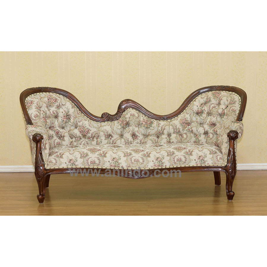 Natural french sofa is made of mahogany wood in medium mahogany finish. Covered in floral ...