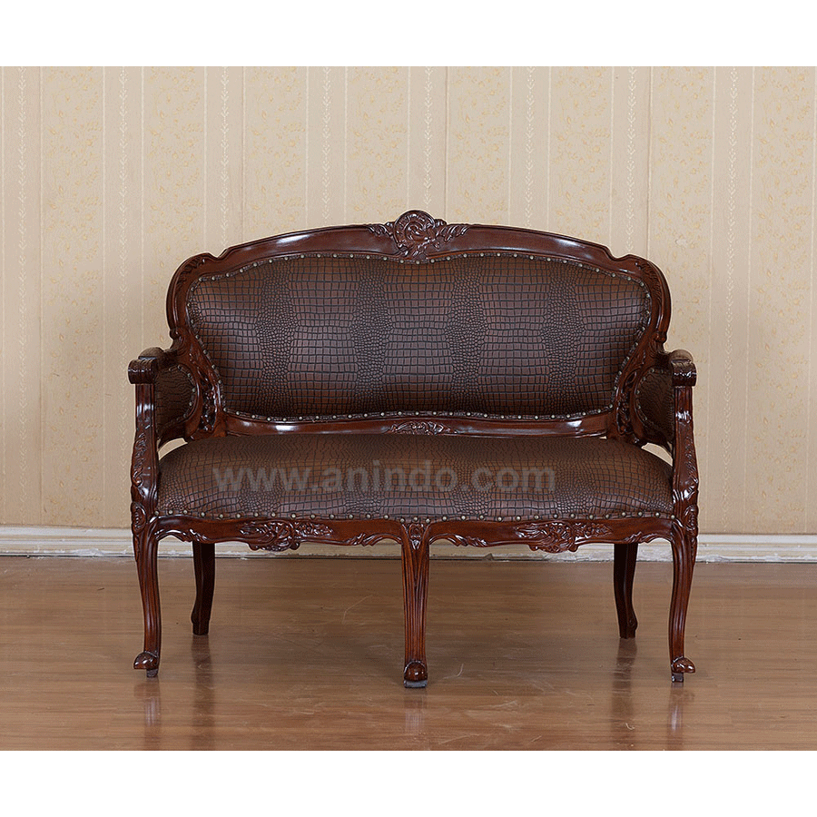 Our?beauty french?sofa is made of?mahogany wood in tea brown finish. Upholstered in dark ...