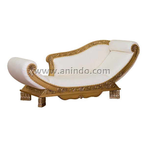 Our?sleep well sofa is made of mahogany wood in gold leaf finish. Covered in white PU leather.