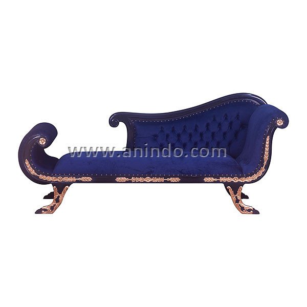 Sofa antique is made of mahogany wood in black combined with gold painted finish. Upholstered in blue velvet fabric.