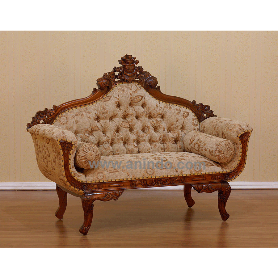 Our?flower sofa 2 seater is made of mahogany wood in?walnut finish. The fabric is 100% ...