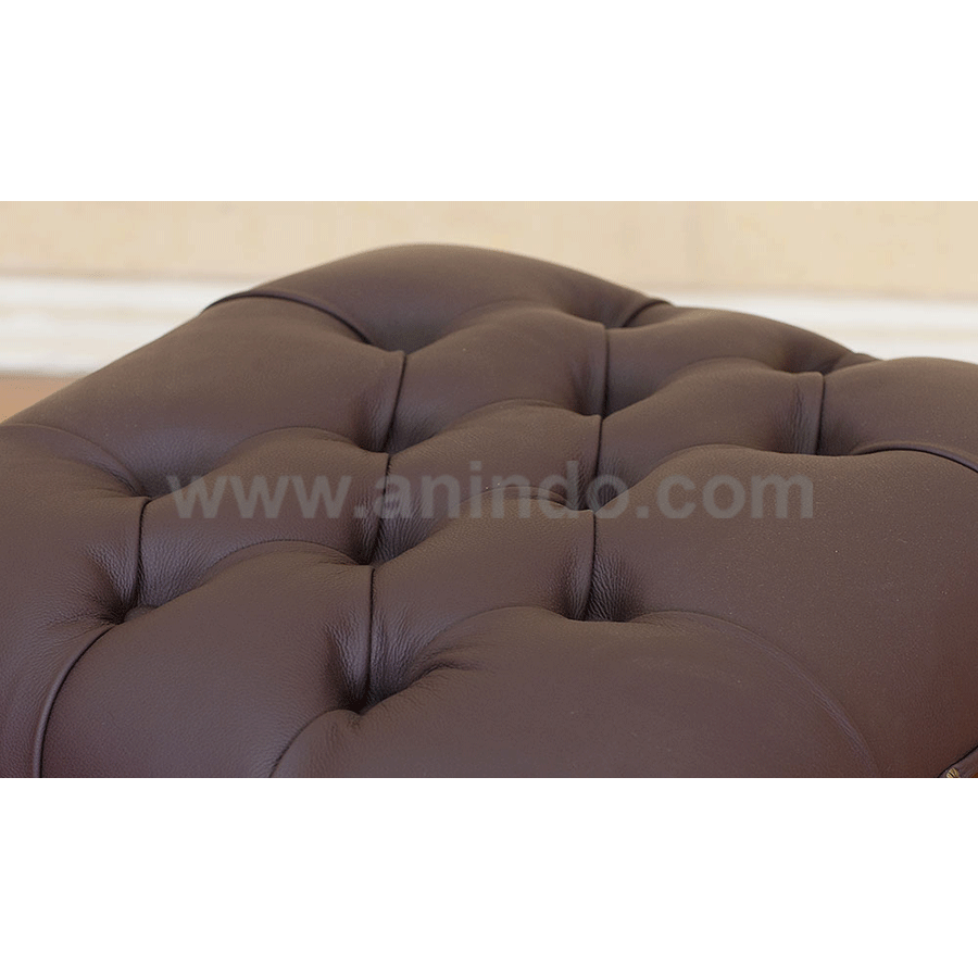Tail stool small is made of solid mahogany wood in standard finish. Upholstered in brown ...