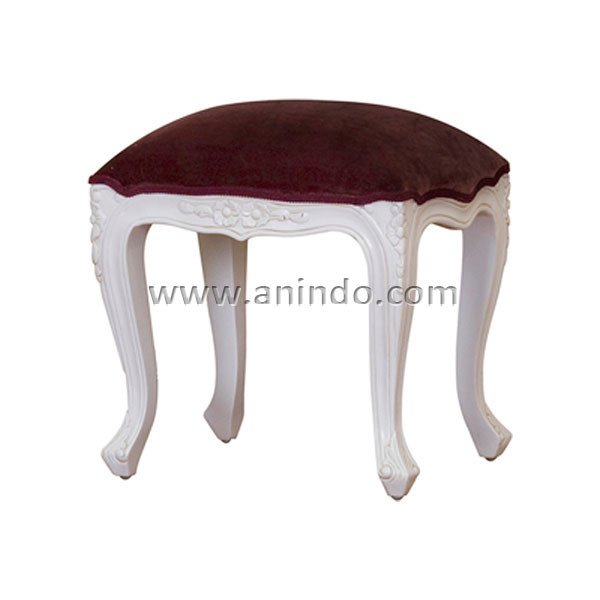 Monica stool is made of solid mahogany wood in white painted finish. Upholstered in burgundy velvet fabric.