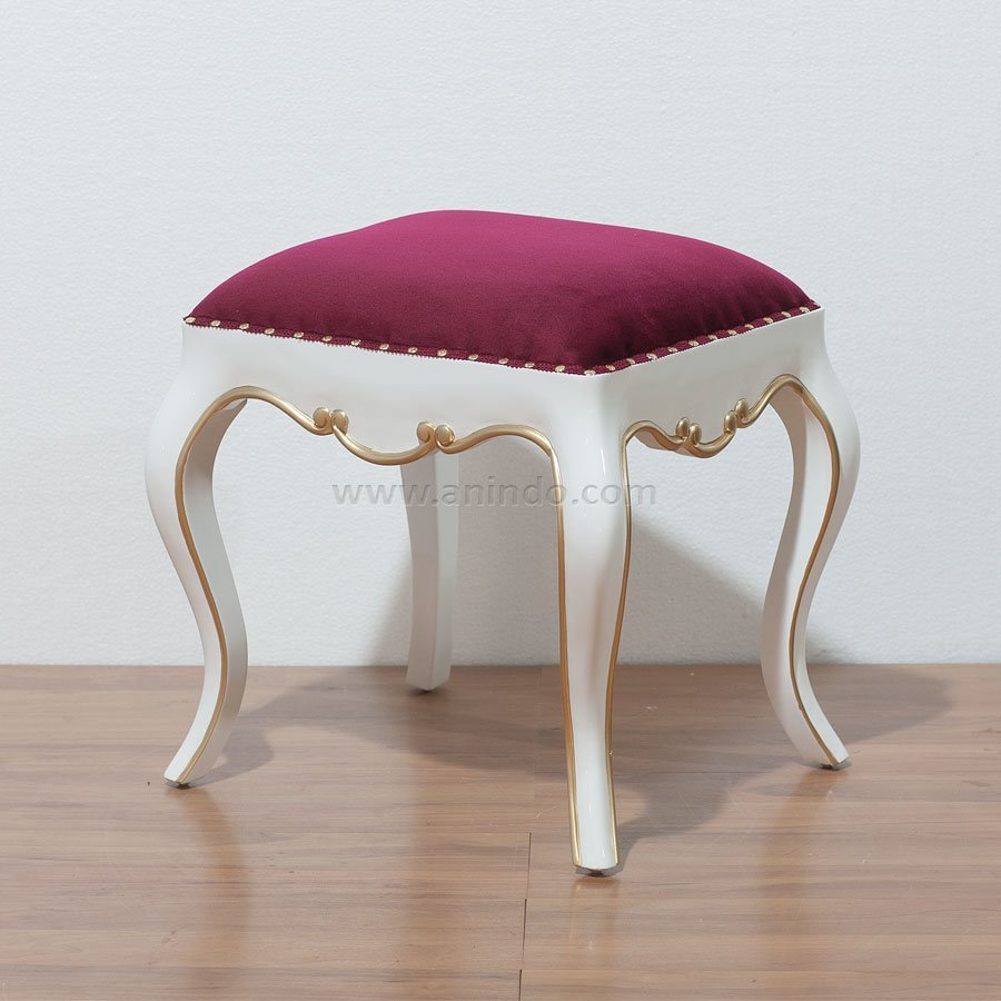 Nella stool is made of solid mahogany wood in white combined with gold painted finish. Upholstered in Red velvet fabric.
