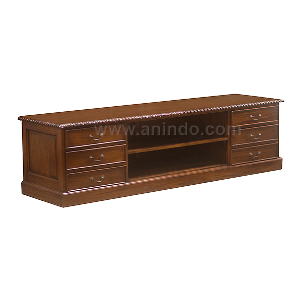 6 drawer tv cabinet is made of solid mahogany wood in pecan finish.