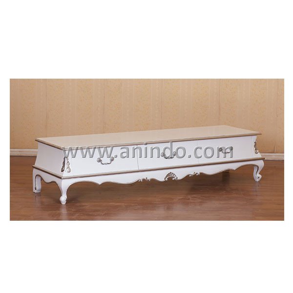 Our low tv cabinet is made of mahogany wood in white combined with gold painted finish.