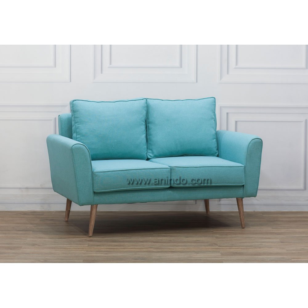 Alameda loveseat is made of solid mindi wood frame with antique finish legs. Upholstered in teal fabric. Match to Alameda Chair & Alameda Sofa