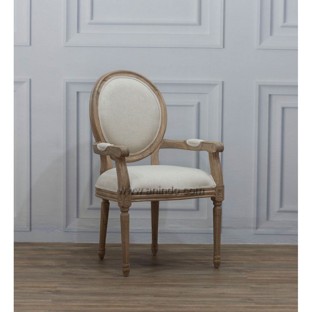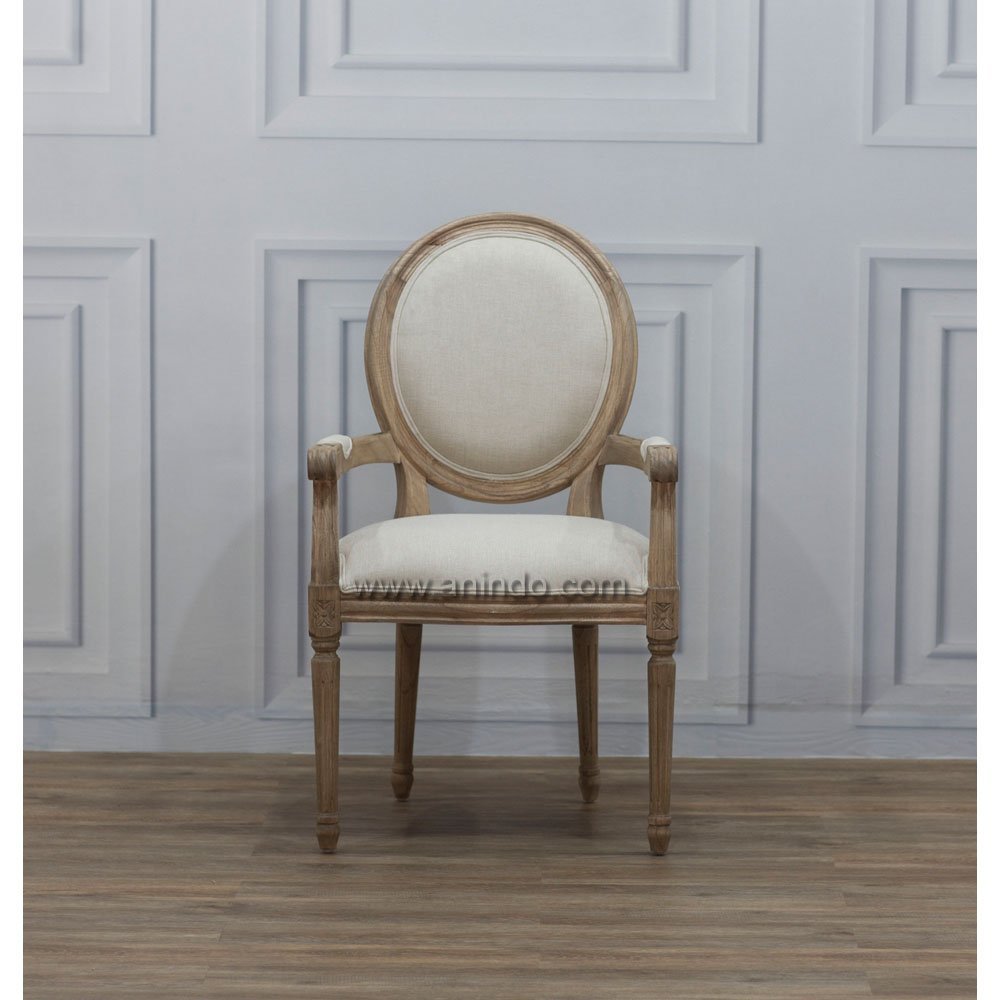 Las Vegas arm chair is made of solid sungkai wood. Antique finish. Upholstered in cream ...
